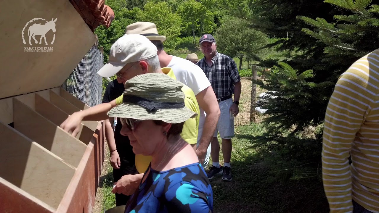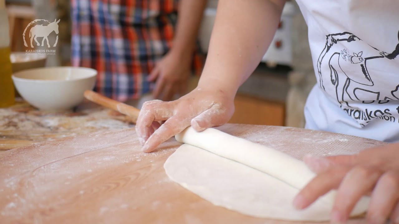 Welcome to our farm Farm to table Our yard full of happy guests Newborn in our farm Your party in the farm kitchen garden Homemade phyllo pastry sheets Collecting fresh eggs from chicken coop Cooking greek pie at Karaiskos Farm